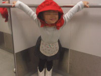 なので、昨日のハロウィンパーティで頭にだけ付けていけるようにと赤い頭巾を作ったんだけど、見事に行きの電車でしか被ってもらえなかった(;つД`)