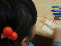 少しすると、男子達は塗り絵の紙を折ったり、裏に絵を描いたり…最終的に玩具の方へ脱出w