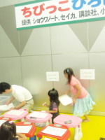そんな保育園、やはり人は少なめで、ホールに年少・年中・年長を集めて合同保育。