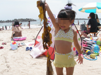 砂浜を掘って水を入れてプールを作ってるらしい。