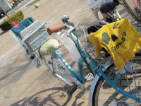 テンション上がっちゃってるタレメは、自転車の後に乗って