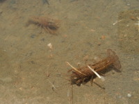 さっき落ちたばかりの水辺にて、ザリガニ(?)観察中。
