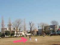 先月、保育園で作って持って帰った凧をあげるのも今日の目的の一つ。