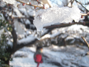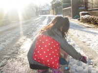 小学生が数人、遅刻だねーと話しながらも雪で遊びながら歩いてた。