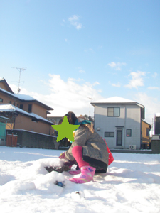 雪に浮かれて、道路のど真ん中で遊ぼうとする人w
