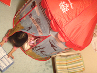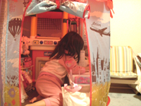 早速、部屋を片付けがてらテントの中にキッチンやら机やらを配置。
