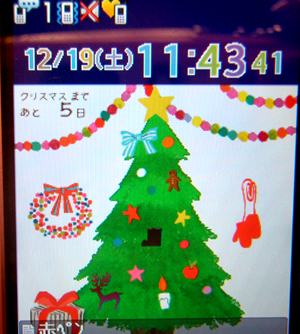 タレメが喜ぶかと、ケータイの待ち受け画面をクリスマス仕様にしてた。