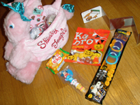 シャーリーテンプルのノベルティとか、ガチャガチャとか、光るわっかとか…。