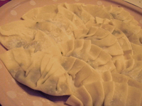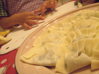 前々から約束していた、初めて餃子の皮包み。