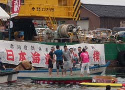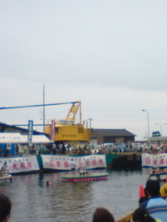 水上相撲という、その名の通り水の上で相撲をとるというものがあるということで、ここから見に行くことに。