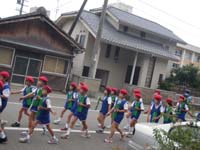 外を子ども達のパレードが通る。