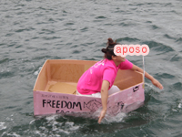 午後のダンボール舟レースの準備。