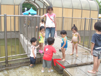 まだ全員いないけど、タレメは一早く水着に着替えて水遊び!