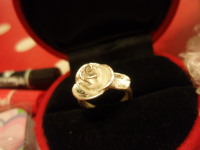 描いた絵を店員さんに渡したら、造花のカーネーションを貰った。