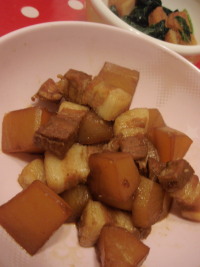 どっちも煮物に使うので、グツグツ煮てる間に、私は洗濯・タレメは布団をたたむ。