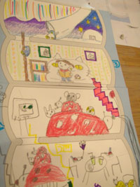 紙に穴を開け、糸で縫い合わせ
