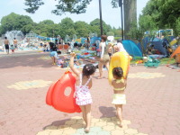 なんとか入って、場所取って、子ども達は早速遊ぶ。