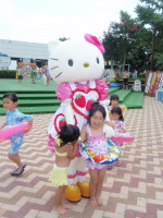 恐ろしく暑いのに、プールで彷徨わなければならないキティちゃん。