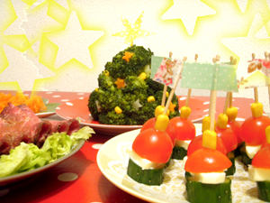 ケーキとは別で食事もクリスマスっぽいのを出してみよう!と。