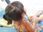 娘っち(3歳半)、髪がすごく伸びてる!おろすとお尻くらいまであるそうだ。良いなぁ