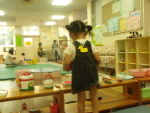今の保育園、1・2歳児は2階・3~5歳児は1階と分かれてるから、大好きな赤ちゃんと戯れられなくてちょっと不満らしいの。