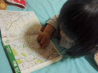 地図を見ながらお話を作ってるタレメ。