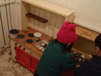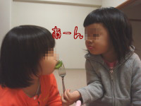恐がってしまったミウちゃんを楽しませようと、おままごとを提案。