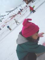 ちなみに、私はソリで上手く止まれず、境界線のネットを張ってる棒に2回激突。
