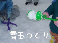 雪玉を作る玩具を見つけて挑戦するも