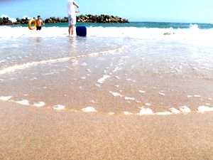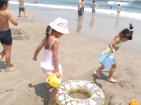 砂浜を掘って水を入れてプールを作ってるらしい。