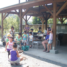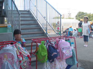 泣いちゃう子には、年長さんが優しく外に連れて行ってあげたり。