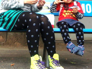 太めだからタイツが伸びて、ドクロも太めーなのも気にしない。