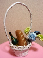 )カゴとお花は、可愛い100円ショップの『キッチンキッチン』にて。