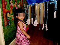 保育園から借りた手ぬぐいを頭に。