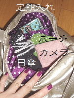 化粧ポーチ(自作)が黄緑のドット。