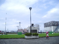 かなり地味ーっていうか芝生と、ショボい自販機1つと、テーブル3組。