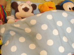 今日は全部出してきて、ぬいぐるみ用の布団に寝かせてお話を聞かせてた。
